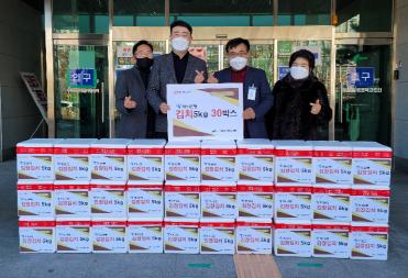 [한국연예축제일보, 유혜경기자] 하나은행 본점이 3일 홀몸 어르신들의 설 맞이에 도움이 되고 싶다며 광산구 수완동 행정복지센터에 5kg들이 김장김치 30박스를 전달했다.
