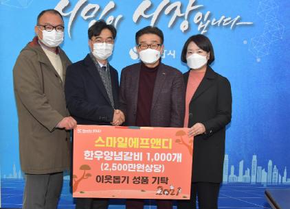 [한국연예축제일보, 유혜경기자] 스마일에프앤디는 지난3일 한우양념갈비 500g 1,000개(금2,500만원 상당)를 기탁했다.
