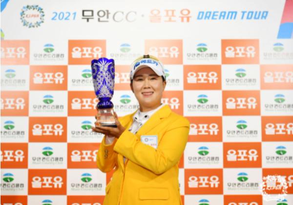 [한국연예축제일보, 변현식기자] 8월 19일(목), 전라남도 무안에 위치한 무안 컨트리클럽(파72/6,479야드)의 남A(OUT), 남B(IN) 코스에서 열린 ‘KLPGA 2021 무안CC-올포유 드림투어 9차전(총상금 1억 원, 우승상금 1천8백만 원)’에서 김세은(23,도휘에드가)이 4년 만에 드림투어 우승 트로피를 들어 올렸다.