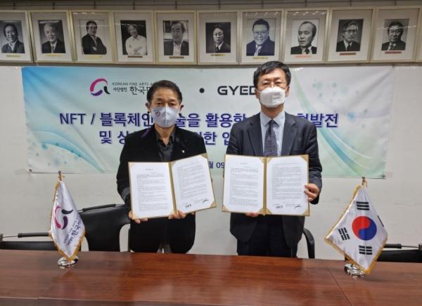 [한국연예축제일보, 장현주기자] 홍콩에 본부를 둔 글로벌 블록체인 플랫폼 전문업체 가이덤재단(대표 티나 캐넌)과 (사)한국미술협회는 10일 대체불가능토큰(NFT) 미술거래 솔루션의 공동개발과 보급을 위한 공식 협약을 체결했다.