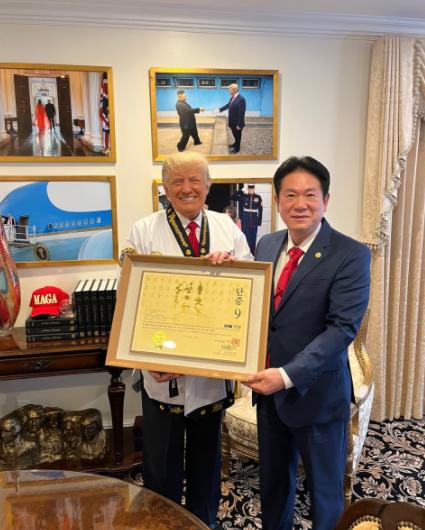 [한국연예축제일보, 변현식기자] 국기원이 도널드 트럼프 전 미국 대통령에게 명예 9단증을 수여했다.