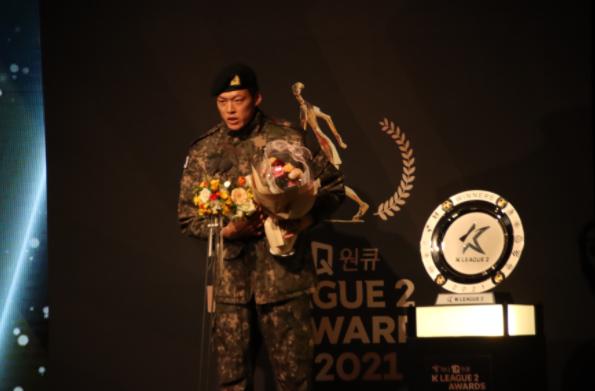 이어 “항상 물심양면 도와주시는 김천상무 후원회와 부대에서 참된 가르침을 주시는 곽합 부대장님, 사랑하는 아내에게 이 상을 바치고 싶다”고 덧붙였다.