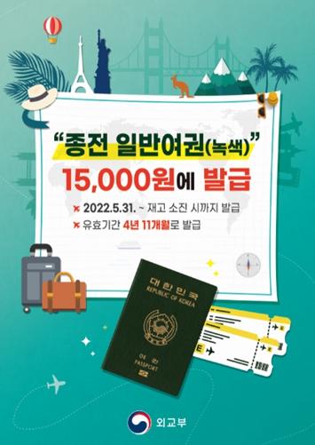 이에 따른 후속조치로서, 5.31일부터 종전 일반여권(녹색)으로 여권 발급을 원하는 국민에게는 유효기간 5년 미만(4년 11개월) 복수 일반여권을 차세대여권 수수료보다 훨씬 저렴한 15,000원에 발급할 예정이다.