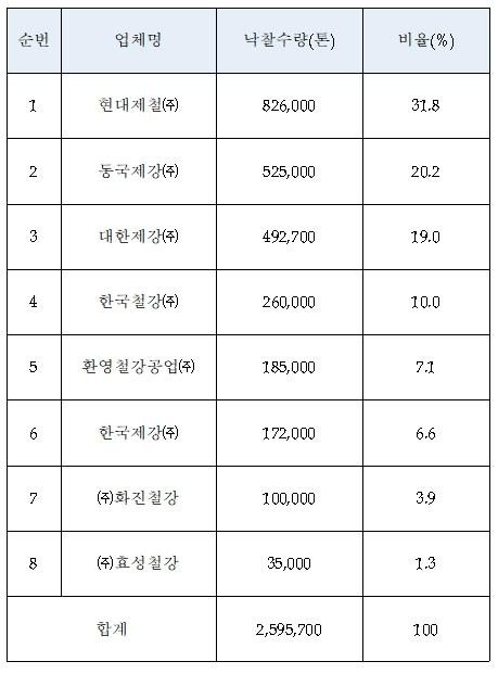 4월 입찰을 실시해 계약한 134만 톤을 포함하면 총 259만 톤으로, 향후 2년 예상 수요물량(236만 톤) 대비 110% 수준을 확보했다.