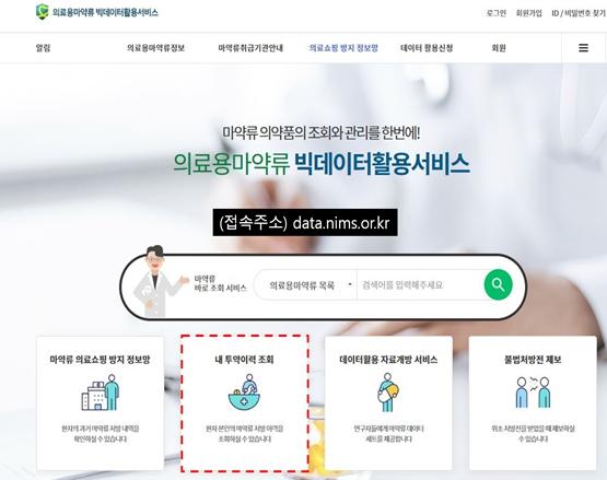 개인별 마약류 투약이력은 마약류통합관리시스템으로 수집된 빅데이터를 토대로 제공되며, 조회시점으로부터 지난 2년간의 투약이력을 확인할 수 있다.