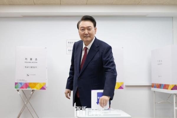 대통령은 투표소에 도착해 선거사무원에게 “수고 많으세요. 투표하러 많이 오셨나요?”라고 인사했다. 대통령은 신분증 확인 등 본인 확인 절차를 거친 뒤, 기표소로 이동해 기표한 후 투표지를 접어 투표함에 넣었다.