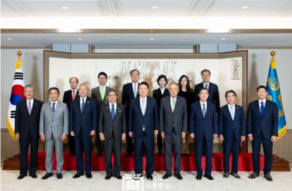 [한국연예축제일보, 김재만기자] 윤석열 대통령은 10월 18일 오후 제31회 한일재계회의(10/17~18, 서울) 참석차 방한(訪韓) 중인 일본 경제단체연합회 도쿠라 마사카즈 회장을 비롯한 일본 경제인 대표단을 접견했다. 접견에는 한국경제인협회 류진 회장을 비롯한 한국 기업인들도 함께 참석했다.